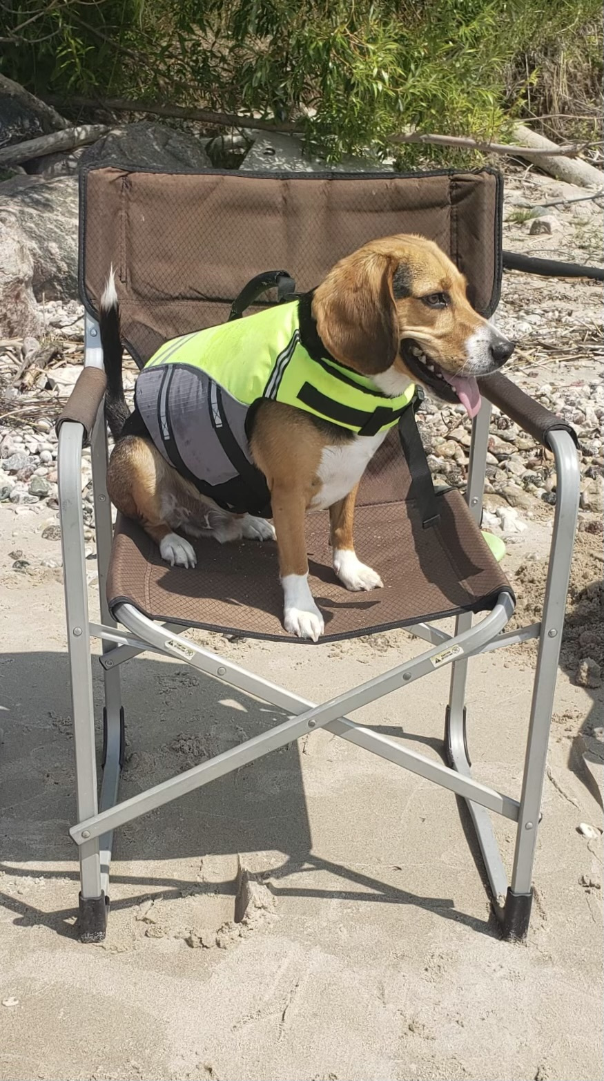 This full doggy life jacket fits the bill completely. It comes in a wide range of attractive and easily seen, highly visible colours and is very comfortable to wear for long periods of time as it does not hinder his/her natural movement.